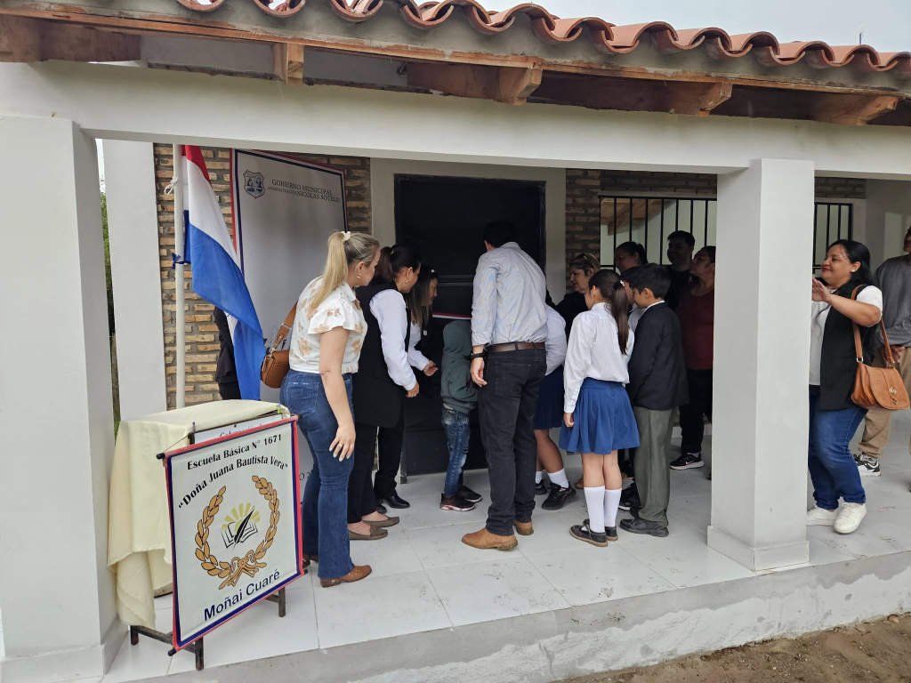 Padres de Familia, alumnos y la Directora de la InstituciΓ³n agradecieron por tan importante obra en la CompaΓ±Γa MoΓ±ai Kuare la cual beneficiarΓ‘ a toda esa comunidad educativa.