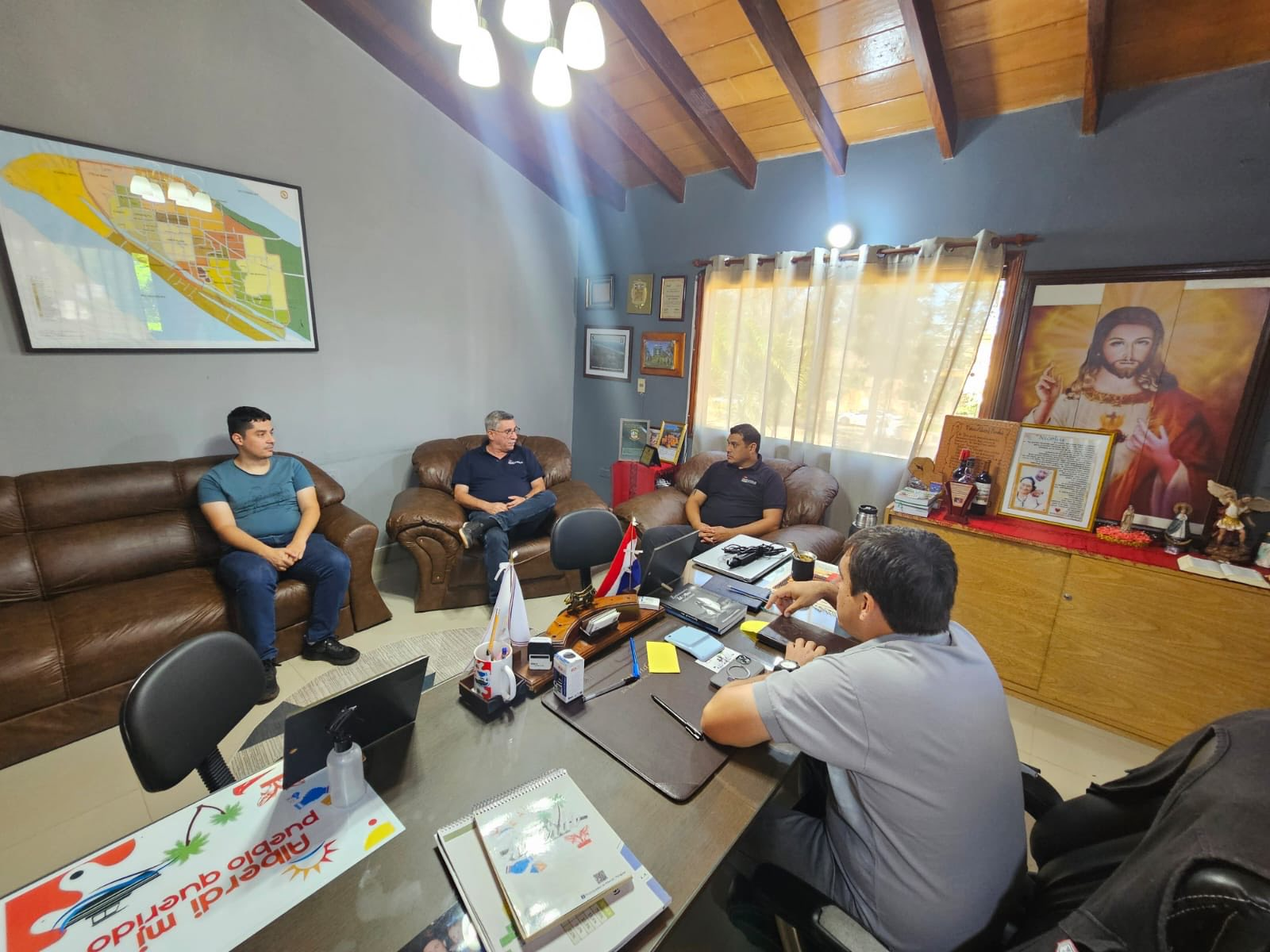 El Intendente Municipal Dr. Nicolás Sotelo. Recibió esta mañana al Lic. Jorge de Isasa, Director de la Dirección de Puesto de Control Migratorio Zona 3 en los Departamentos de Misiones y Ñeembucú junto a su comitiva.